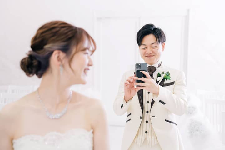 ロケーションでも館内でも、折角フォトウエディングで着替えた晴れ姿、ご家族にだけはお披露目しようかな…